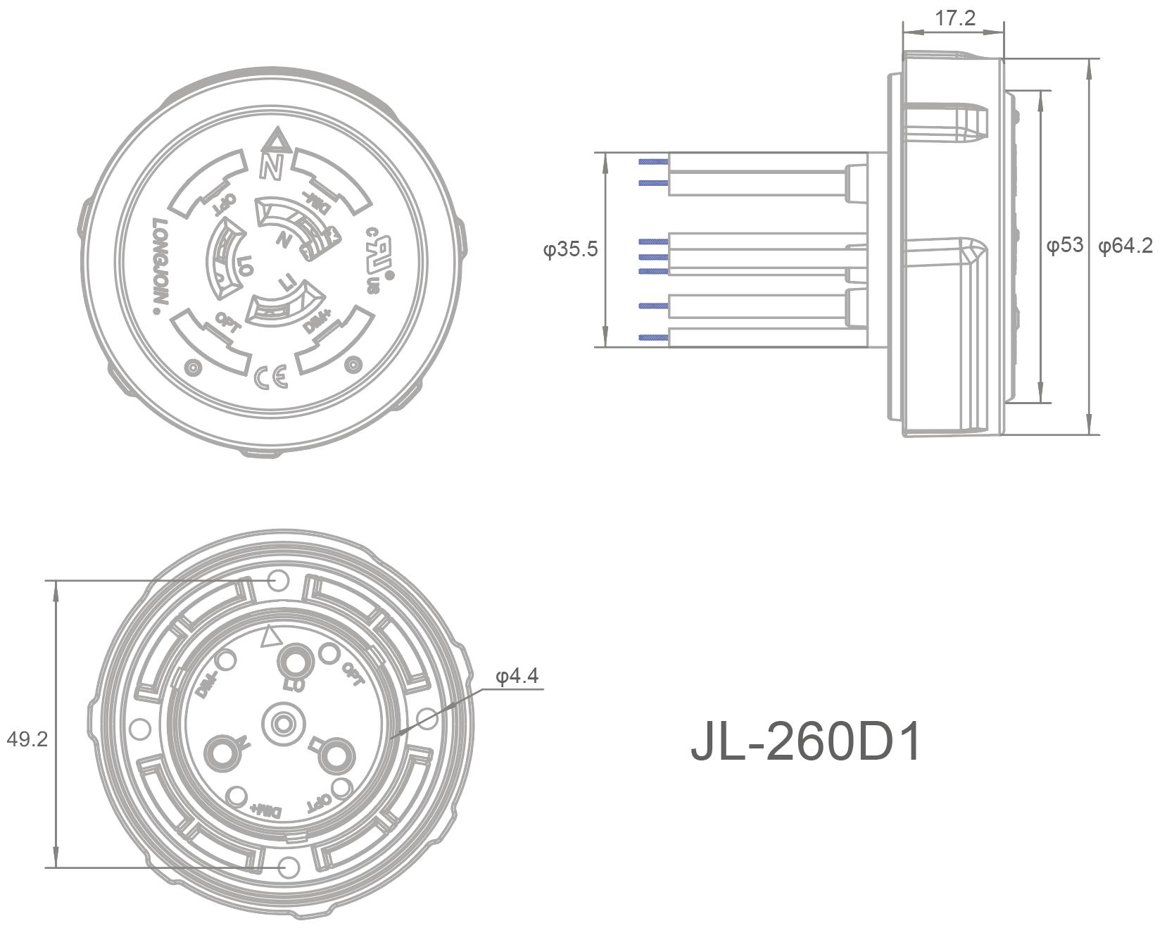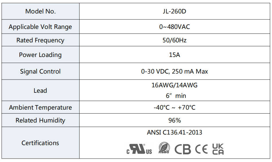 This JL-260D series photocontrol receptacle is designed for the lanterns those intended to have an ANSI C136.10 receptacle to fit a twist-lock photocontrol. it conforms newly published ANSI C136.41 to allow a LED lamp multi-controlled through the receptacle.