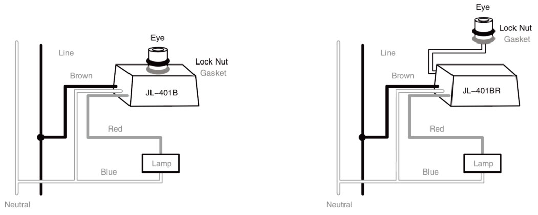 Disconnect power, place screw thread of the photocontrol in knockout hole and fasten with rubber gasket and lock-nut. Wire according to the diagram in below. Do not install the photocontrol with the Photocell facing artificial or reflected light. This may cause the unit to cycle on and off at night.